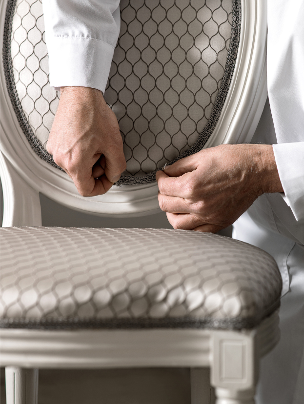 В ателье Togas Couture вы можете заказать перетяжку любой мебели, выбрав ткань из нашей коллекции. Всего за 30 дней мастера ателье подарят ей новую жизнь: подберут дизайн и оттенок текстильной обивки, восстановят поврежденные пружины, заменят наполнитель.